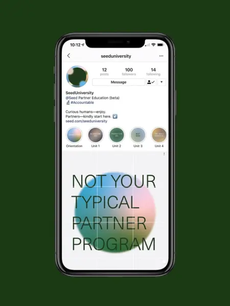 Our work with Seed includes the award-winning rethinking of what an affiliate program can look like: Seed University, a science class you can take on Instagram.